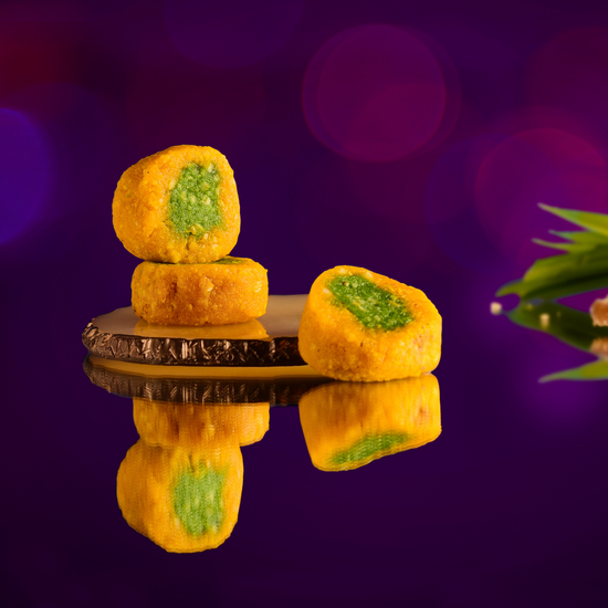 Vibrant betel leaf with rich pistachios for an irresistible treat.