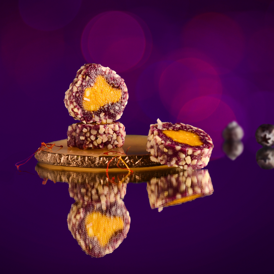 Vibrant blueberry with the luxurious essence of saffron and toasted macadamia giving the fruity flavours the perfect crunch!