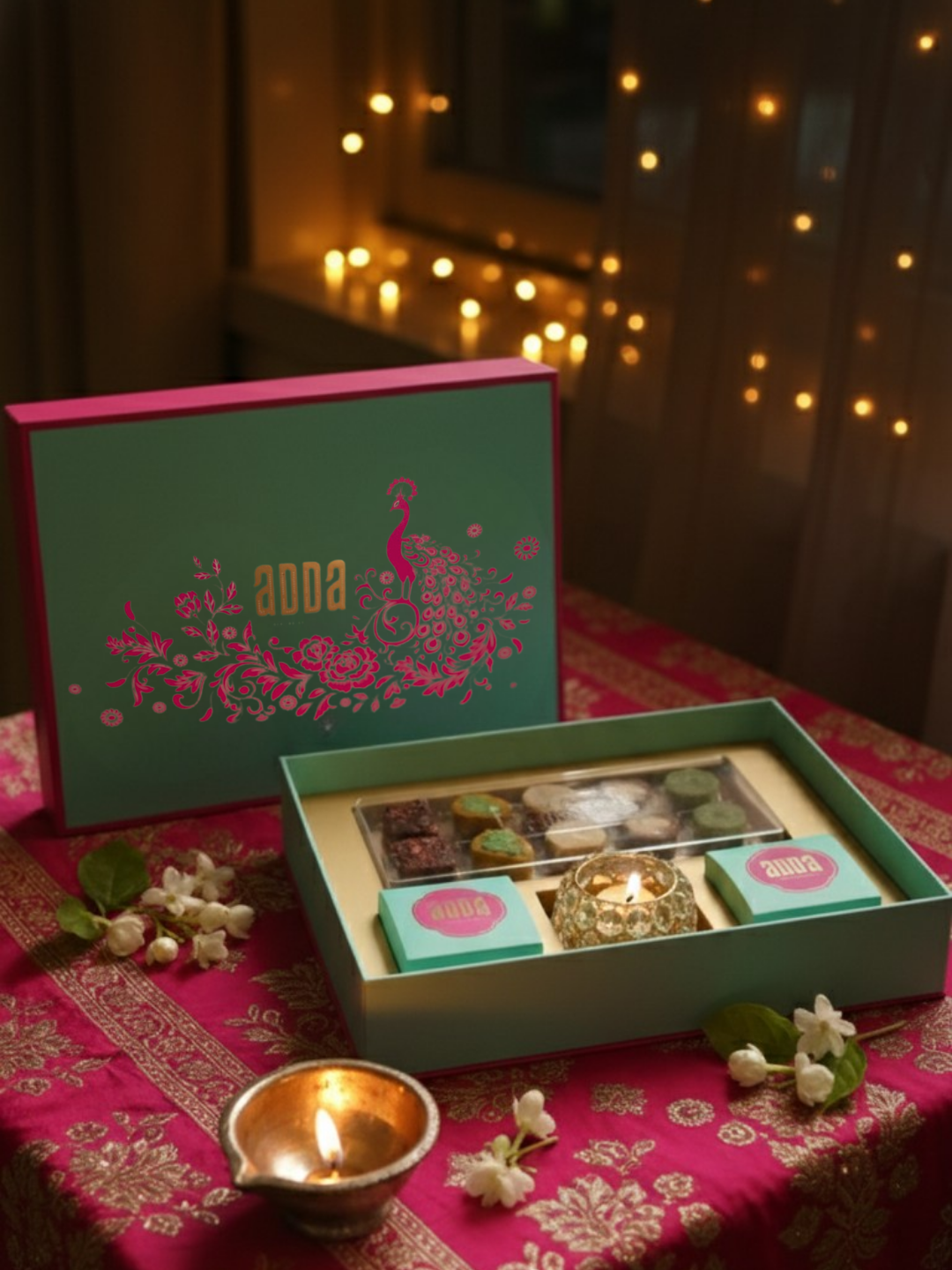 Five Varieties of Sweets - 20 pieces of Sweets and 2 boxes of Nuts and a Candle in a reusable Tray Box